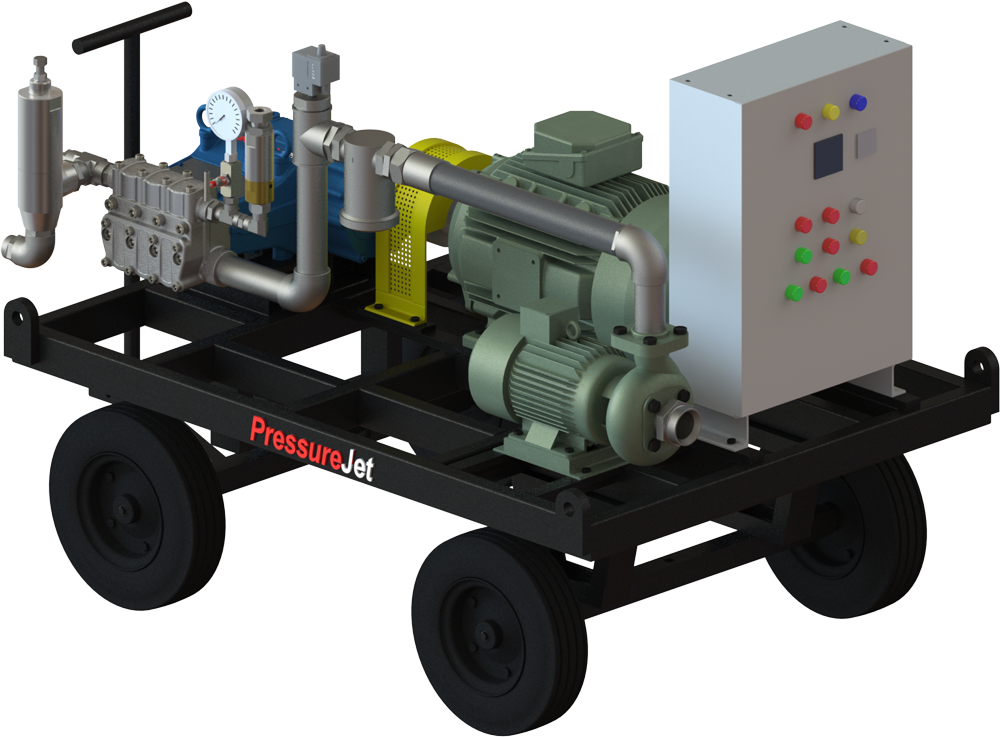 The Electric Motor or Diesel Engine Driven Hydro Test System is specifically designed for hydrostatic pressure testing applications that require high pressure with comparatively higher flow rates. The system is capable of generating pressures up to 450 bar while delivering a flow rate ranging from 21 LPM to 73 LPM, making it ideal for testing large-volume pressure equipment. Powered by an electric motor or diesel engine in the range of 20 HP to 40 HP, the system offers flexibility for both in-plant testing operations and on-site field applications where electrical power availability may be limited. Key Applications This system is primarily used for hydro testing of: Pressure Vessels Industrial Boilers Large Volume Fabricated Equipment Heat Recovery Units High-Capacity Process Equipment The higher flow rate allows faster filling and pressurization, significantly reducing overall testing cycle time for large components. Why Higher Flow is Required In hydro testing of pressure vessels and boilers, the internal volume is relatively large. A higher flow rate: Ensures quick filling of the test object Reduces air pockets during pressurization Enables uniform pressure buildup Improves overall testing efficiency System Configuration & Major Components 1. High-Pressure Plunger Pump Triplex reciprocating plunger design Capable of sustained operation at high pressure High volumetric efficiency and minimal leakage 2. Drive System Electric Motor (20–40 HP) for indoor or fixed installations Diesel Engine (20–40 HP) for remote or site-based testing 3. Pressure Control System Manual or automatic pressure regulating valve Smooth and controlled pressure ramp-up Pressure holding capability for extended durations 4. Instrumentation & Monitoring Glycerin-filled pressure gauges Digital pressure transmitter (optional) Data logger / chart recorder (optional) 5. Safety System Pressure relief valve set above test pressure Burst disc (optional) Emergency shutdown system 6. Skid / Frame Assembly Heavy-duty fabricated skid Anti-vibration mounting Suitable for trailer or containerized configurations Technical Performance Range Parameter Specification Max Operating Pressure Up to 450 Bar Flow Rate 21 – 73 LPM Drive Power 20 – 40 HP Drive Type Electric Motor / Diesel Engine Pump Type High-Pressure Triplex Plunger Pump Application Pressure Design Up to 500 Bar Advantages of the System High-pressure capability with higher flow for large-volume testing Reduced testing time for pressure vessels and boilers Stable pressure holding for code-compliant testing Low maintenance and long service life Suitable for both shop-floor and field operations Typical Testing Standards Supported ASME Section VIII ASME Section I (Boilers) API Pressure Testing Standards ISO & customer-specific specifications Conclusion This Electric Motor / Diesel Engine Driven Hydro Test System is an ideal solution for pressure vessel and boiler hydro testing, where pressure requirements are up to 450 bar and higher flow rates are essential to ensure efficient filling, accurate pressurization, and reliable test results. Designed for durability, safety, and performance, the system ensures compliance with international hydro testing standards.